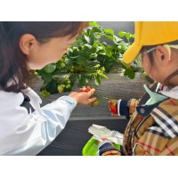 在草莓大棚中,孩子们亲手采摘那些晶莹剔透的草莓,体验收获的喜悦。他们在绿叶中寻找最大的草莓,互相分享采摘的乐趣,整个过程中充满了欢声笑语。